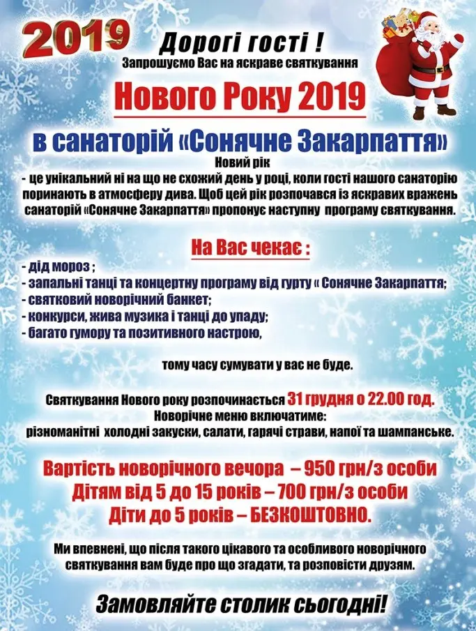 Новый год в санатории «Солнечное Закарпатье»